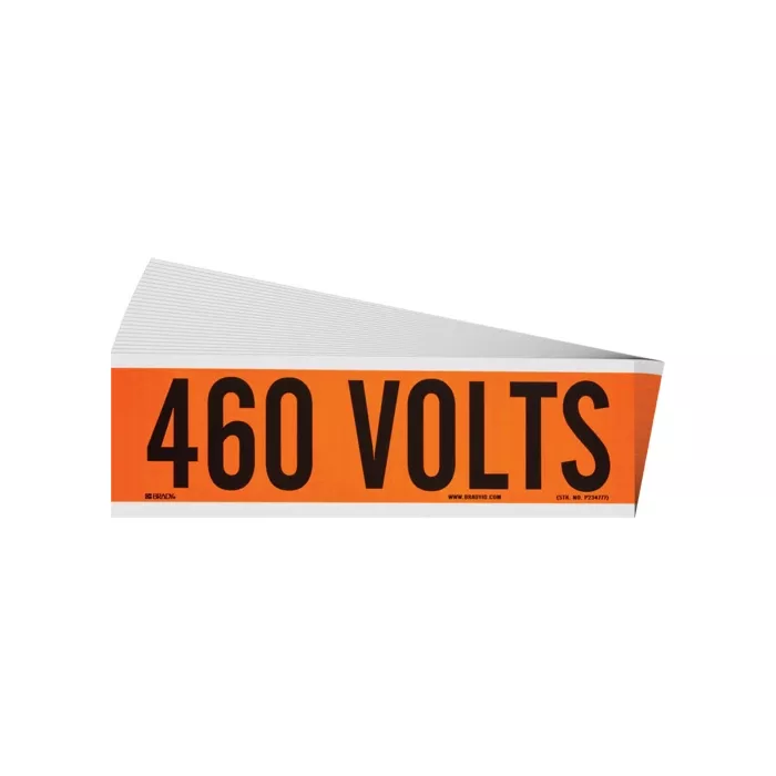 - Orange ASME-compliant conduit and voltage labels alert employees to potentially dangerous machinery or energized equipment