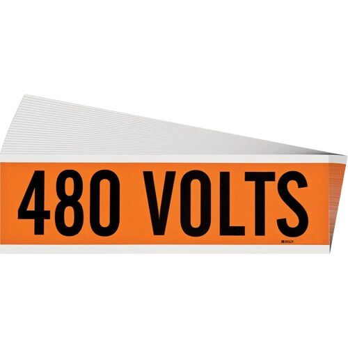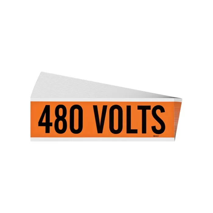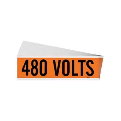 - Orange ASME-compliant conduit and voltage labels alert employees to potentially dangerous machinery or energized equipment