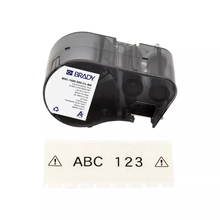 Brady All-Weather Labels, 1.5", Vinyl, Black on Clear, M511 (M5C-1500-595-CL-BK)