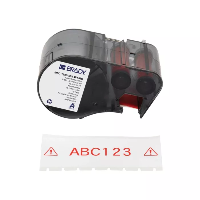Brady All-Weather Labels, 1.5", Vinyl, Red on White, M511 (M5C-1500-595-WT-RD)