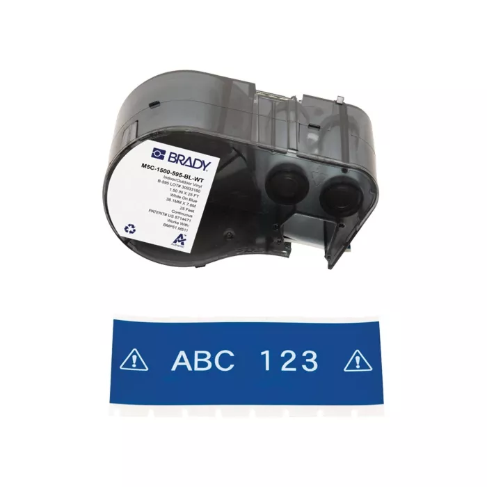Brady All-Weather Labels, 1.5", Vinyl, White on Blue, M511 (M5C-1500-595-BL-WT)