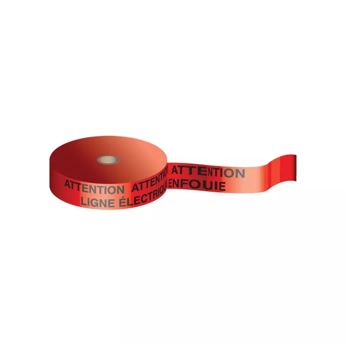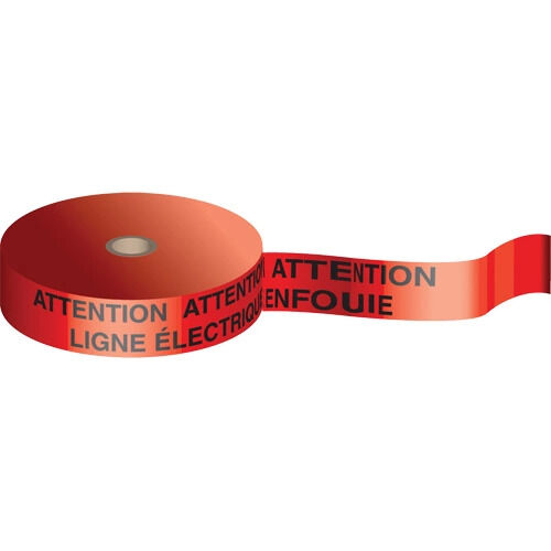 Brady "Attention Ligne Electrique Enfouie" Tape, 6" X 1000', Red, Polyethylene (9491296)