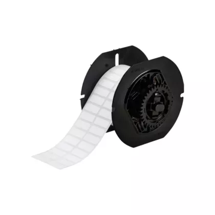 - Matte white polyester material has a permanent acrylic adhesive and is thermal transfer printable