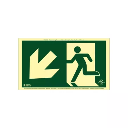 BradyGlo® Running Man Exit Sign with Down Left Arrow
