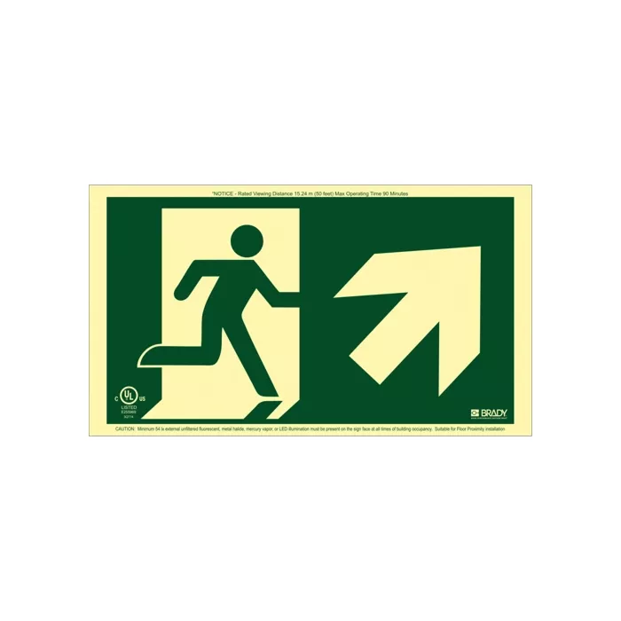 BradyGlo® Running Man Exit Sign with Up Right Arrow