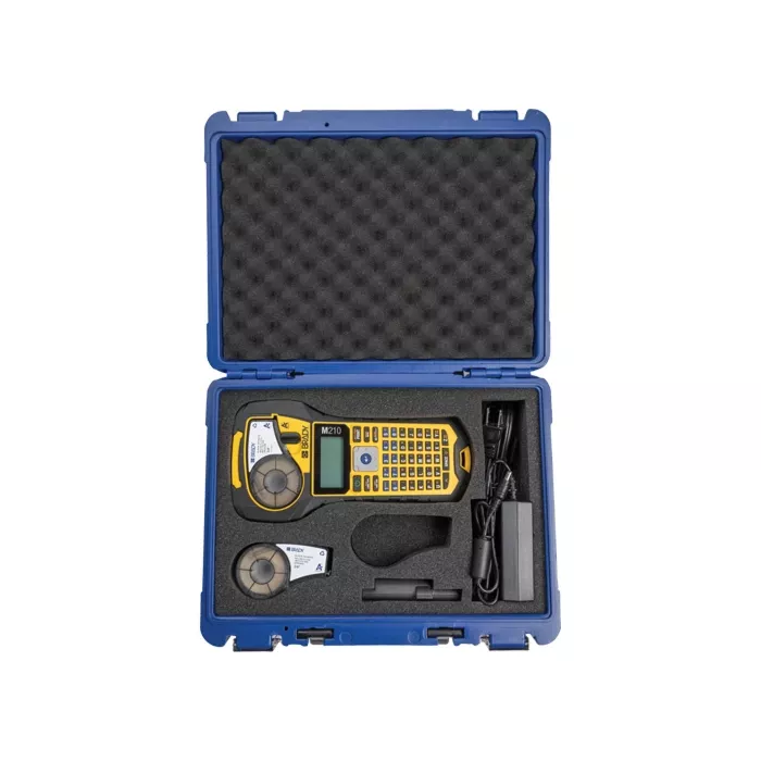 - Foam interior holds an M210 Label Printer, 2 label cartridges and accessories (or more cartridges)
