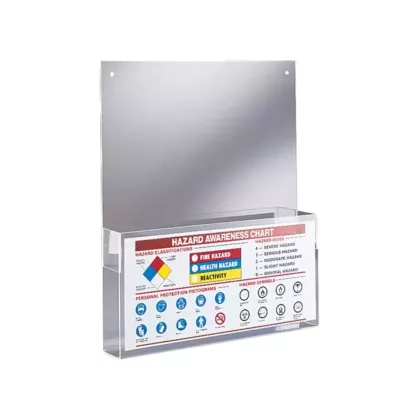 - The ideal solution for those with limited wall space and/or few MSDS requirements (i.e. office space). The Mini Hazard Awareness Centre is made of clear acrylic 14 1/4" L x 12" W x 2" D. The kit comes complete with pre-applied Mini Hazard Awareness Chart and Mini 1" MSDS Binder. Hazard awareness kits, charts and binders are available in English and French.
