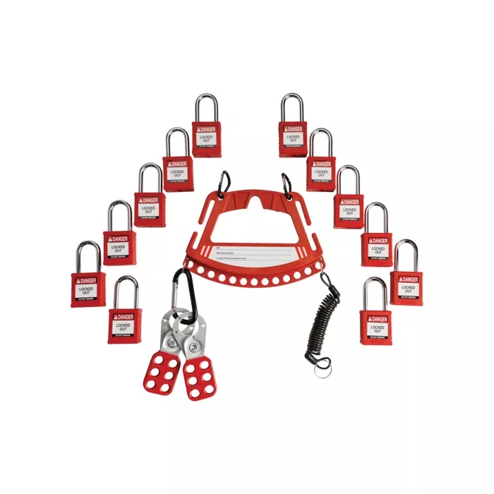 - Also includes one pack of 12 keyed-alike nylon-body padlocks (SDPL-RED-38ST-KA12), which allow all locks to be opened with a single key to eliminate key-to-lock confusion