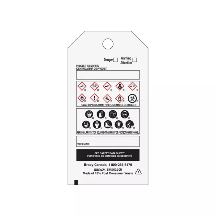 - Simply enter the product identifier using a pen or a permanent marker, pick the appropriate WHMIS and PPE symbols, add any specific handling precautions, apply laminate and adhere label to the container