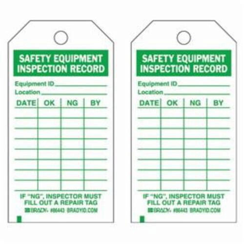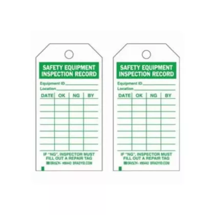 - Tags inform employees that equipment has been inspected, and is safe and in good condition