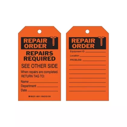 - Tags inform employees that equipment has been inspected, and is safe and in good condition