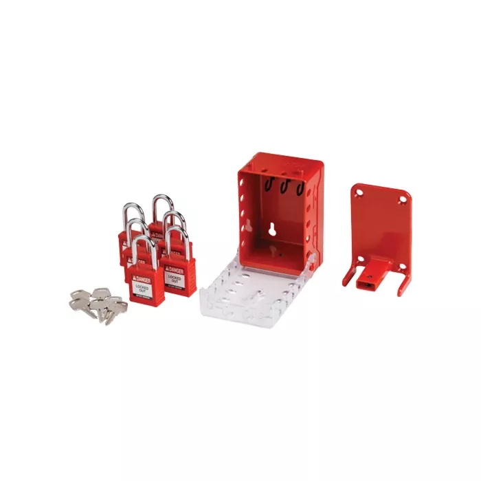 Ultra Compact Group Lockout Box with Nylon Safety Lockout Padlocks