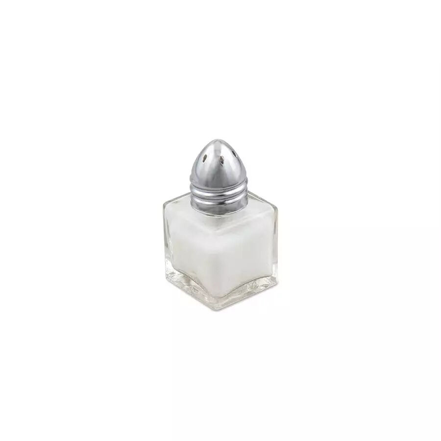 Classic square glass design. Chrome-plated, dome-shaped top with universal holes.