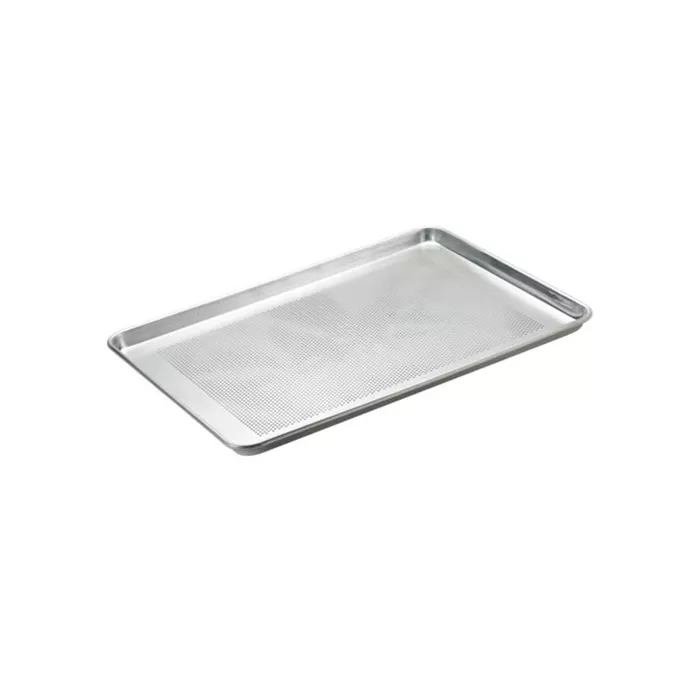 18 gauge - 1.0mm. With perimeter reinforcing wire to resist warping. 3.0mm diameter perforations.