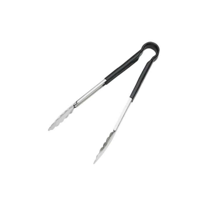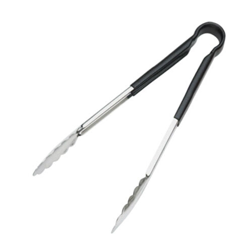 Color-coded, one-piece kitchen tongs. Stainless steel with PVC coating. One-piece construction eliminates food traps for more sanitary use. Color-coded handles help maintain food safety. 1.0 mm thickness.