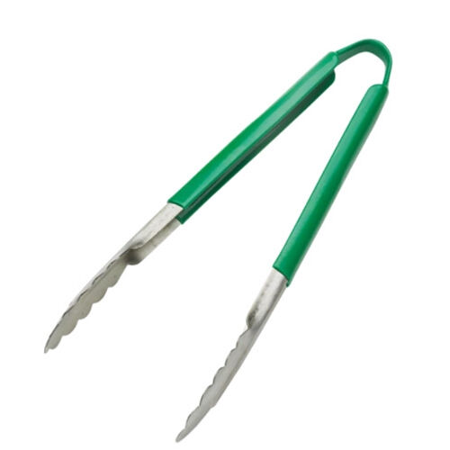 Color-coded, one-piece kitchen tongs. Stainless steel with PVC coating. One-piece construction eliminates food traps for more sanitary use. Color-coded handles help maintain food safety. 1.0 mm thickness.