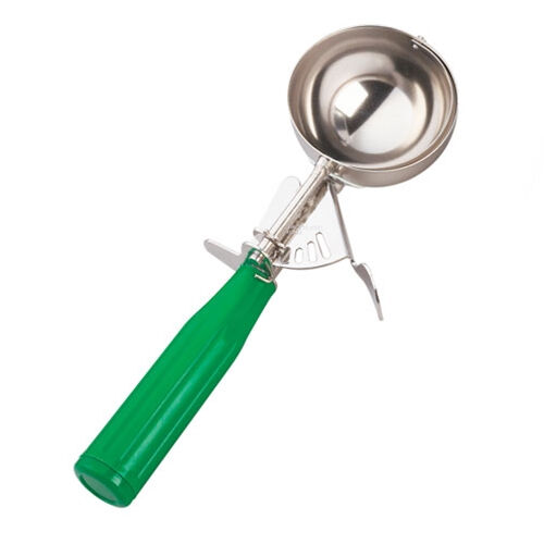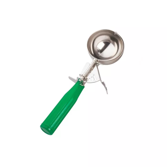 18/8 stainless steel. Color coded polypropylene handles for convenient size reference. All metal parts. Sizes stamped on bowl knife blade. Full loop release bar for easy use. Ribbed plastic handle for sure grip.