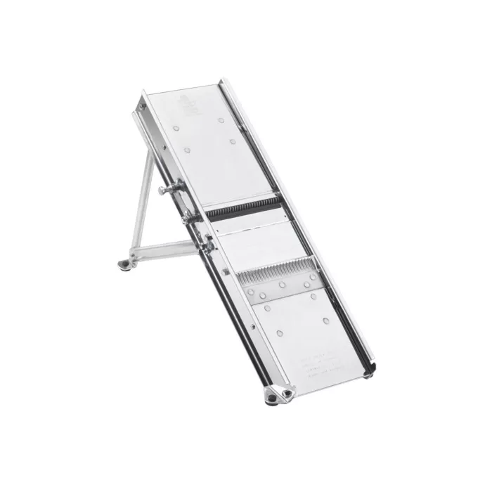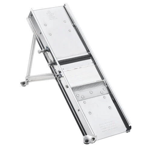 - Includes: (1) serrated blade and (1) double sided julienne blade: one side with (30) teeth, 3 mm spacing; and one side with (10) teeth, 10 mm spacing