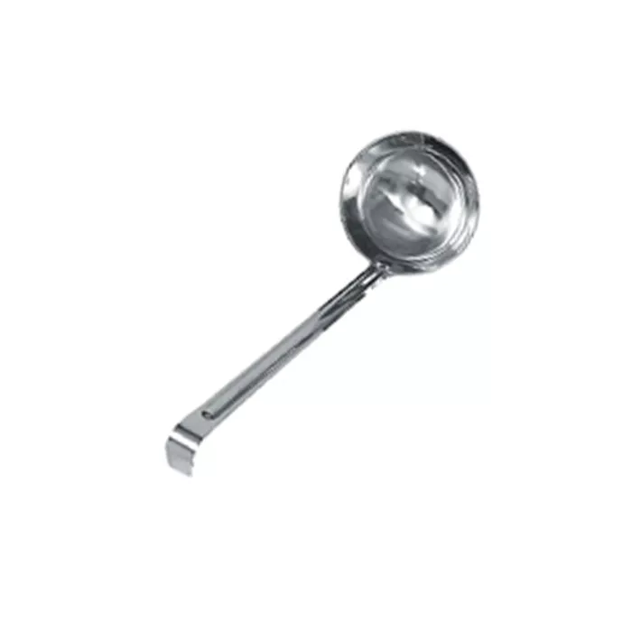Stainless steel. Mirror finish. One-piece construction. Has reinforced, grooved handle to remain rigid ensuring serving control.