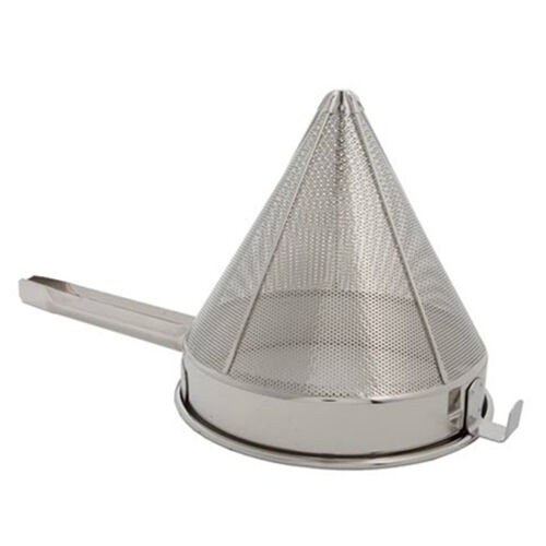 18/8 stainless steel with perforated metal body. One-piece grooved handle for added strength. Frame style dissipates heat.