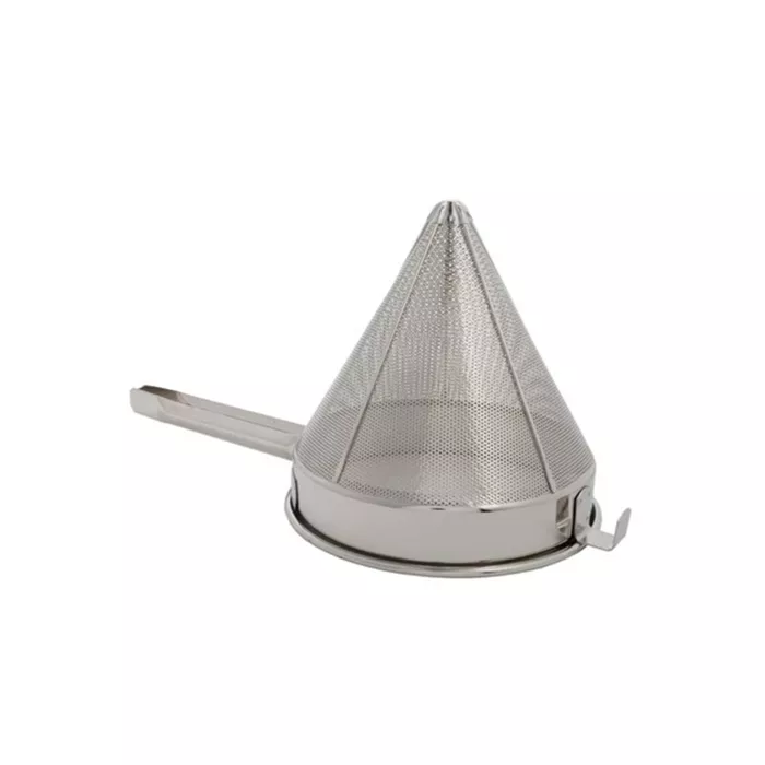 18/8 stainless steel with perforated metal body. One-piece grooved handle for added strength. Frame style dissipates heat.