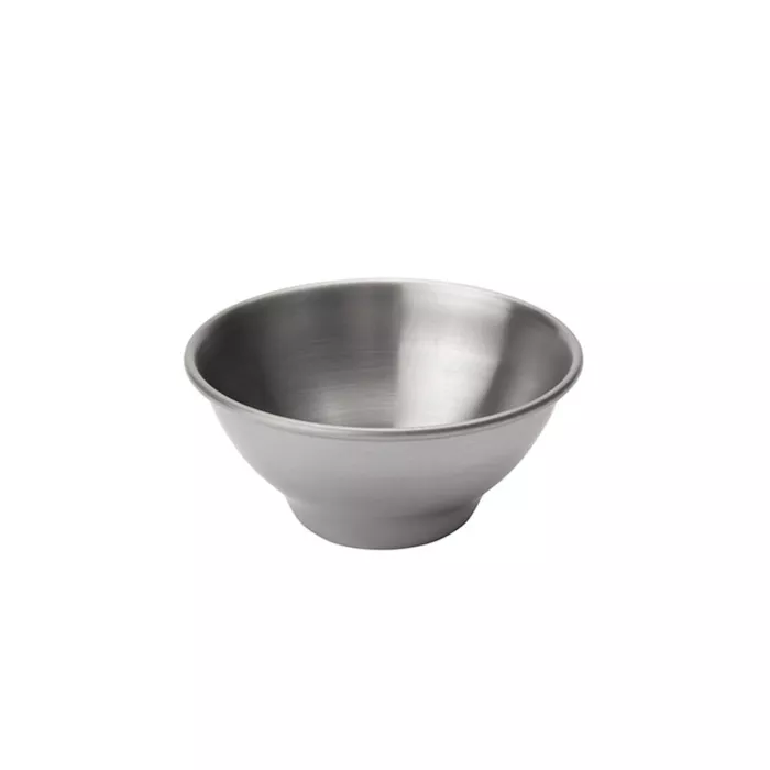 Ideal for sauces and small serving items, these unique serving cups are stainless steel with mirror exterior and satin interior.