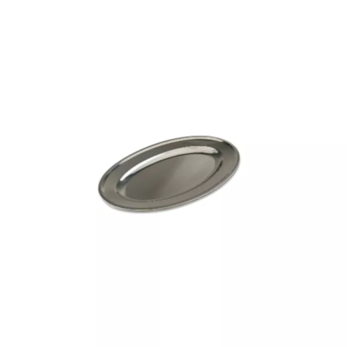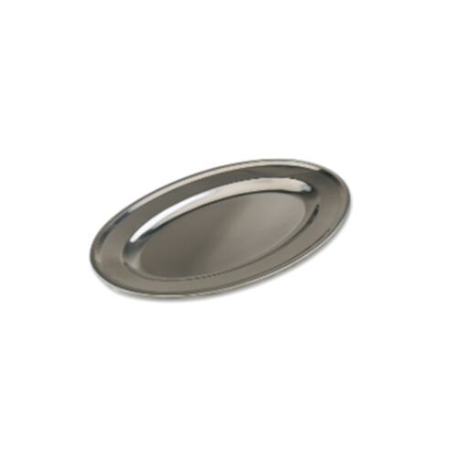 18/8 stainless steel with mirrored finish and rolled edges. Platter surface safe for direct food contact. Dishwasher safe.