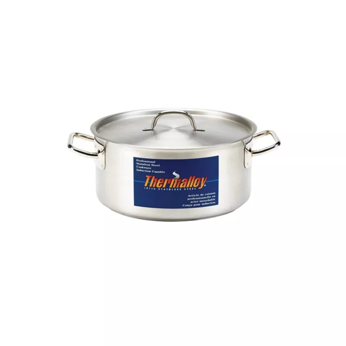 Stainless steel with a clad aluminum disk base provides all-round value in cookware. It cleans easily, has good heat conductivity and will not react with acidic foods. "Stay cool" hollow cast handle. 6 mm aluminum sandwich bottom. Heavy Duty construction. Cover sold separately.