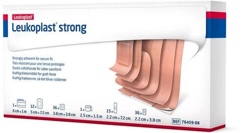 Leukoplast® strong strips is intended for short time use as cover for minor wounds like cuts, lacerations, abrasions or as cover of puncture sites after blood withdrawal or vaccination.