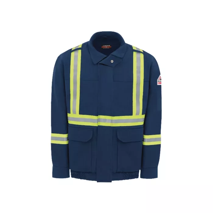 - This lightweight bomber jacket is lined and trimmed with 2" reflective tape to keep the wearer warm and safe out in the field