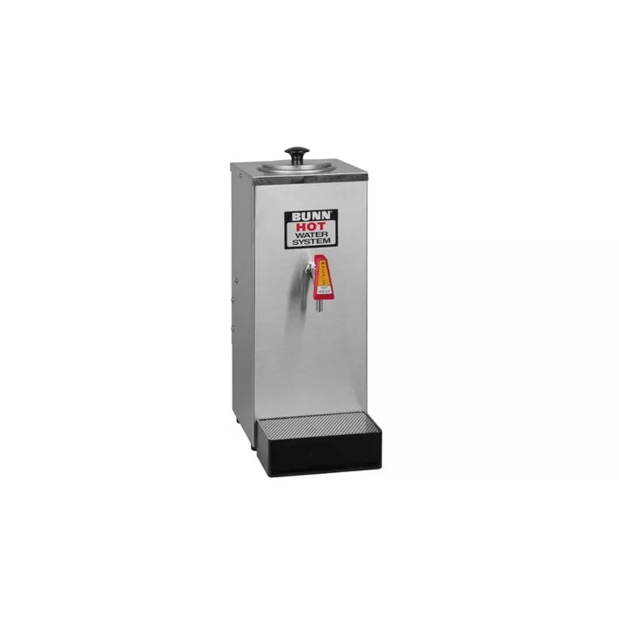Space-saving pourover hot water dispenser plugs into any 120 volt outlet; no plumbing required