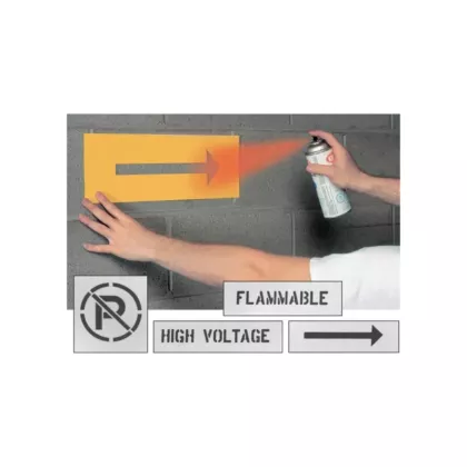 - Economical and reusable plastic stencils are pre-cut. Use brush or spray paint to make a sign on wood, metal, paper, plastic or masonry. Made of durable .015" PVC plastic. Signs conform to OSHA regulations. Overall stencil size 7" x 22"