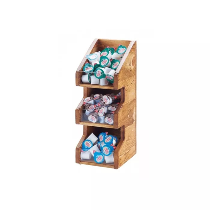 These Madera Condiment Organizers feature a clear acrylic edge to allow customers easy access to see what is in each compartment.