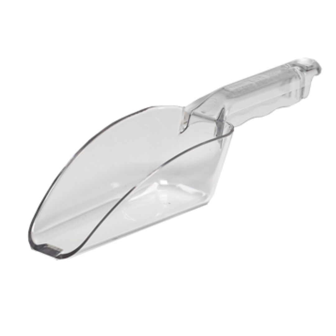 Scoop dry bulk ingredients or ice.Virtually unbreakable Camwear® polycarbonate will not dent, chip or rust.Molded-in sure grip handle includes a hole for hanging.