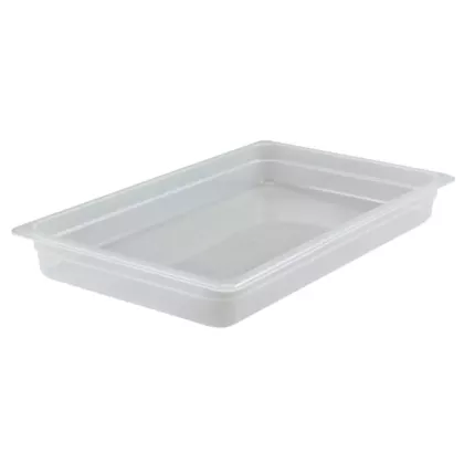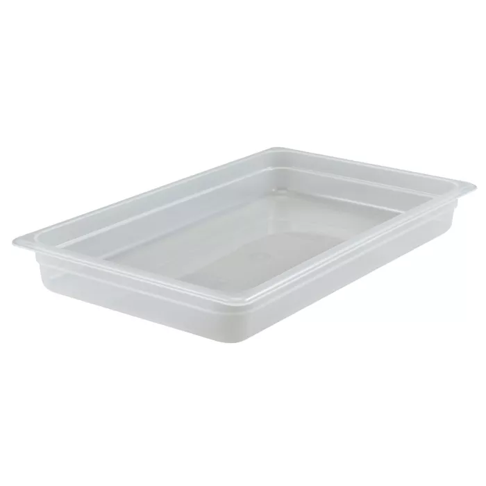 The Translucent Food Pan is the economical choice to store, transport, and serve all-in-one, precisely designed to Gastronorm specifications! Outstanding for prep stations and transporting in Cambro top loading carriers, this solution is translucent food-safe plastic for easy inventory. The non-stick smooth interior surface guarantees better yields and savings on waste, while promoting easy cleaning – safe for commercial dishwashers! Withstands temperatures -40°F to 160°F (-40°C to 70°C) and resists chemicals for added flavor and freshness protection. The Translucent Food Pan’s uniform ½” flange guarantees a quick and comfortable fit during service and while stacking for space saving storage. Get the most from your perfect fit food pan solution with Cambro!