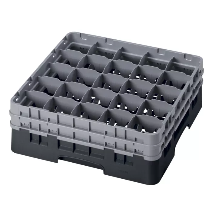 Cambro Glass Rack with 25 Compartments & 2 Grey Extenders - Black Base(25S534(110))