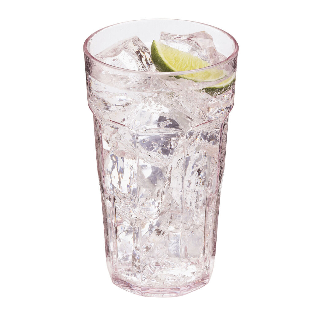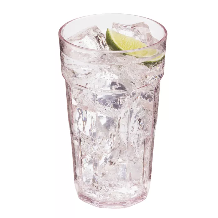 Ideal for casual dining, outdoor events or poolside. Features the look and feel of glass, but made of break resistant SAN. Hammered texture catches the light and hides water spots and scratches. Lightweight and easy to carry.