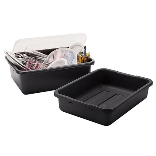 Use for bussing, storing or transporting Made of an economical high gloss plastic for long service with normal use. Will not stick when nested. Colours: black (110), dark brown (131), light gray (180).
