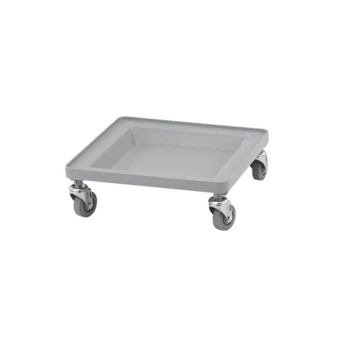 Easily transport full size, 20" x 20", dish racks to and from your warewashing area. Made of polypropylene, this lightweight and easily moveable dolly is extremely durable. Capable of supporting 350 lb. 4EA 4" casters are included.