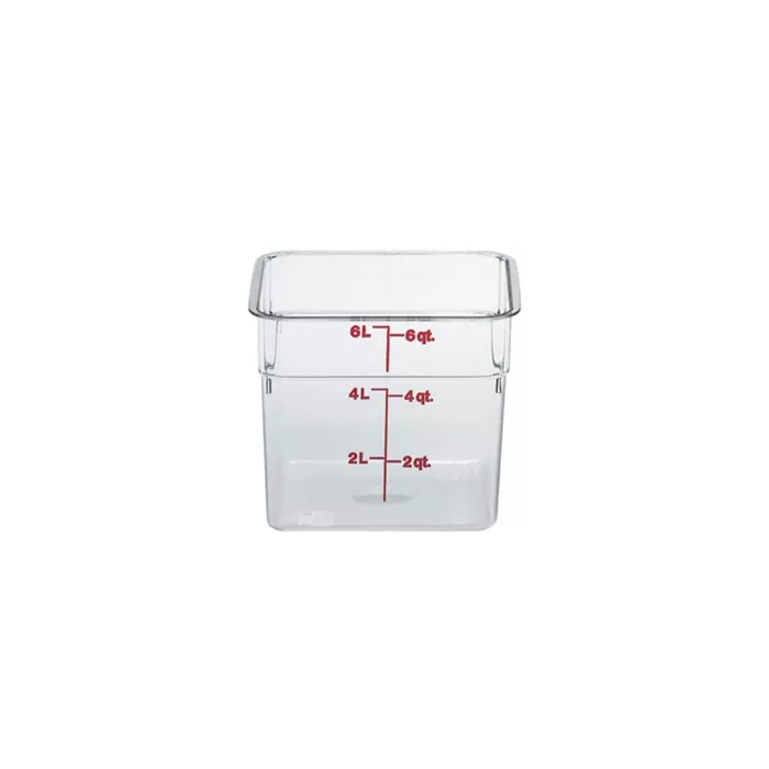 Use to maximize storage of ingredients in kitchen, coolers, freezers or pantries. Inventory at a glance with easy to read graduations on the outside. Color-coded snap-tight polyethylene covers match graduation colors and feature thumb tabs for easy removal. Made of crystal clear, virtually unbreakable Camwear® polycarbonate. Withstands temperatures from -40ºF to 210ºF (-40ºC-99ºC).