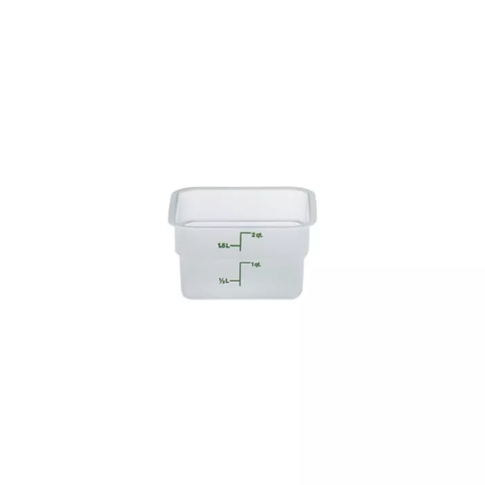 Use to maximize storage of ingredients in the kitchen, cooler, freezer or pantry. Easy-to-read graduations are printed on the outside for inventory at a glance. Made of impact, stain and chemical resistant solid white plastic. Withstands temperatures from -40°F to 160°F (-40°C - 70°C).