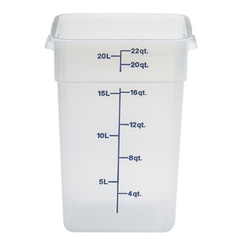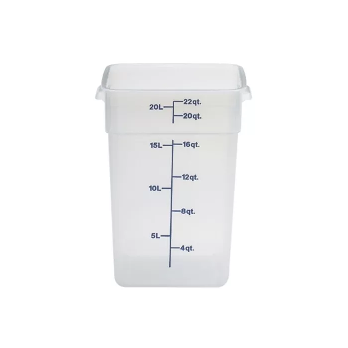 Use to maximize storage of ingredients in the kitchen, cooler, freezer or pantry. Easy-to-read graduations are printed on the outside for inventory at a glance. Made of impact, stain and chemical resistant solid white plastic. Withstands temperatures from -40°F to 160°F (-40°C - 70°C).