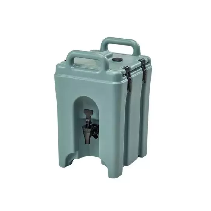 The standard for many caterers. Self-adhesive beverage label set with each unit (Coffee, Decaffeinated Coffee, Punch, Ice Tea, Hot Water). NSF listed. Insulated Beverage Insulated Beverage ServersUse to hold, transport and serve hot or cold beverages for up to 4 hours without electricity. Pre-heat or pre-chill before use to guarantee maximum operational efficiency. NSF listed.One piece, seamless double-wall polyethylene with thick foam insulation. Sturdy latches secure lids tightly and will never rust. Drip-proof recessed spigot for easy self-serve access. Stack units on riser to fill large cups or coffee pots. Vent cap equalizes pressure. Makes opening the container much easier. Sta-stack interlocking ensures stable stacking during transport and storage. Molded-in metal backing plates prevent latches from breaking away from the container. Ultra Comtainers® feature wide nylon latches which are easy to open and close with one hand. Recessed faucet accommodates larger cups. Allows even dispensing and eliminates drips. Two positions: one for continuous pour and one for individual dispensing. Camtainers® feature sturdy latches that secure lids tightly and will never rust.