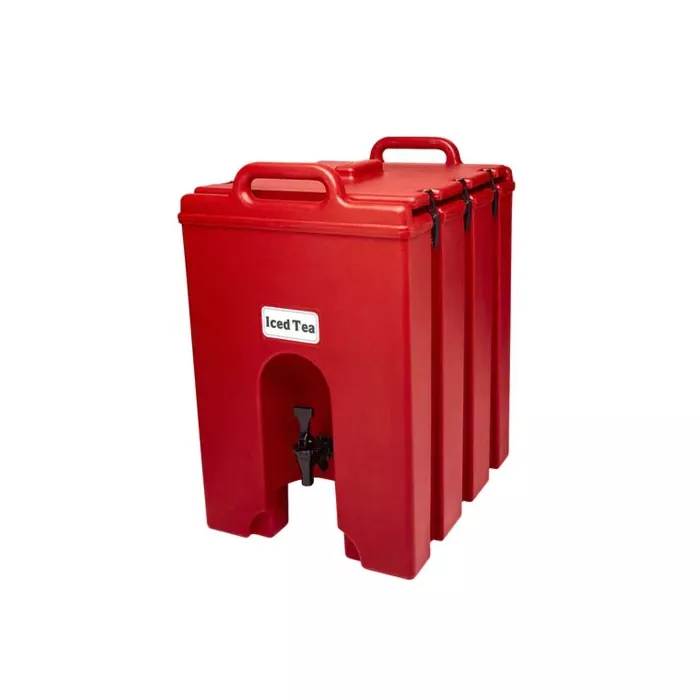 The standard for many caterers these self-serve containers are drip-proof, rust-proof, and have secure latches for their lids. One piece, seamless double-wall polyethylene with thick foam insulation allow beverages to stay cool or hot for hours, and work even better if you pre-heat or pre-cool the container before filling. Self-adhesive beverage label set comes with each unit.