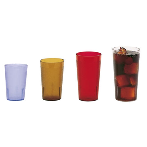 Ideal for casual dining, pizzerias, cafeterias, and healthcare facilities Textured on the outside to resist scratching, smooth on the inside for easy cleaning Made of durable, impact-resistant SAN plastic Interior stacking lugs for easy storing Sani-Rim lip provides a sanitary drinking surface Colours clear (152), ruby red (156), slate blue (401), amber (153), blush (409).