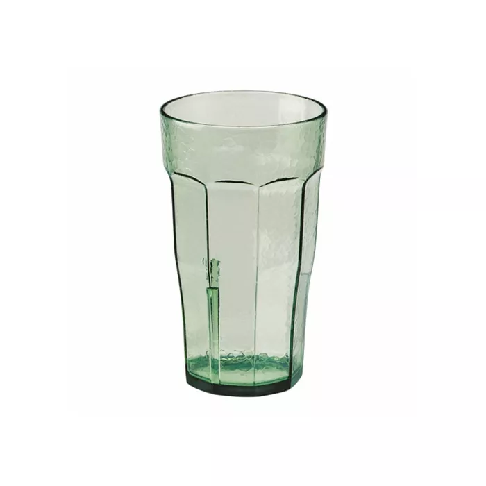 Ideal for casual dining, outdoor events or poolside. Features the look and feel of glass, but made of break resistant SAN. Hammered texture catches the light and hides water spots and scratches. Lightweight and easy to carry. Colours: clear (152), spanish green (427).