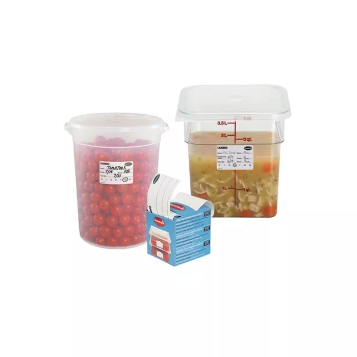 Use to clearly label and date prepared contents in food pans and storage containers. Labels dissolve completely off any container in less than 30 seconds through the dishwasher or under hot or cold running water. No sticky residue. 100% dissolvable and biodegradable. Helps maintain FIFO (First In, First Out) food storage and handling system. Reduces potential risk of food borne illness and cross-contamination. Safe for all sewer and septic systems and no build up in drains. Withstands temperatures up to 200ºF for 4 hours and microwave safe.