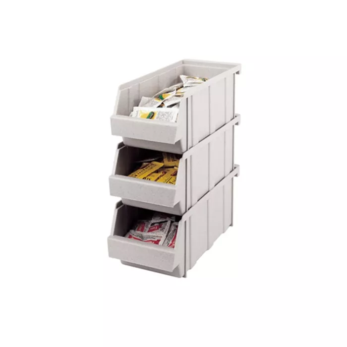 Use to store non-perishable condiments, disposable ware and napkins. Made to assemble and easy to clean. Wall mount or set on flat surface. Each bin holds up to 10 lbs (4,5 Kg).