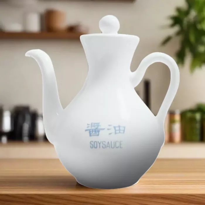 Imperial White Soy Sauce Pot 2.5" x 3.7" x 4" H