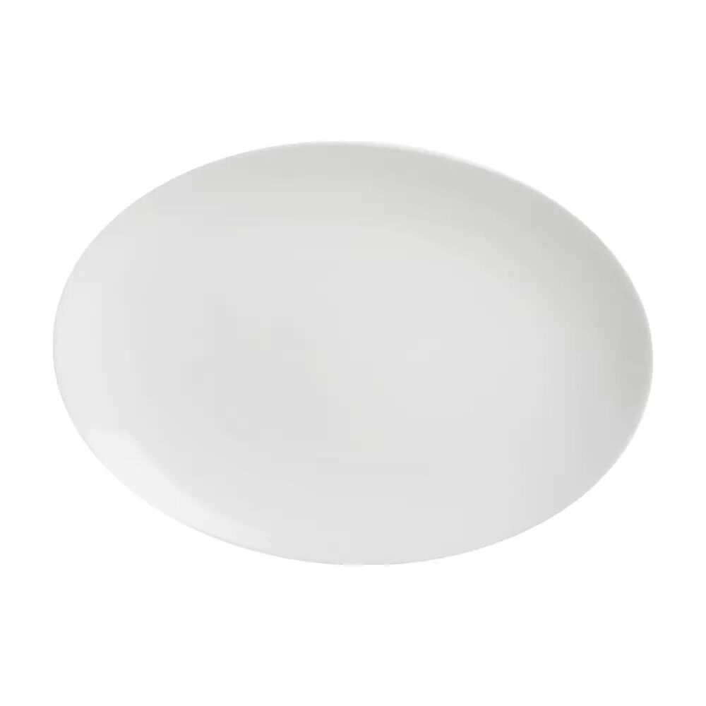 The Oval Coupe Platter is an elegant and versatile choice for any restaurant looking to upgrade its serving ware. The classic oval shape of the platter is a timeless design that is sure to complement any table setting. The platter's white finish is sleek and modern, adding a touch of sophistication to your restaurant's presentation.